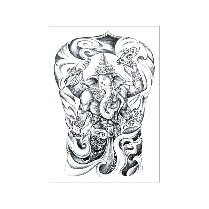 Fake Black Elephant Buddha Large Temporary Body Art Tattoo Lotus Flower Sticker Big Full Back Chest Design For Male Female Tattoo Decal Gift From Homimly 3 99 Dhgate Com